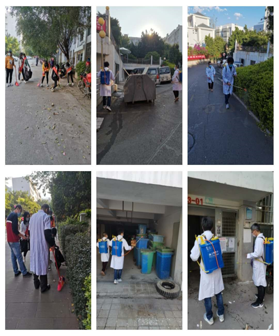 疫情就是命令,防控就是责任。志愿者对小区通道进行垃圾清扫、对垃圾桶及楼道进行消毒。
